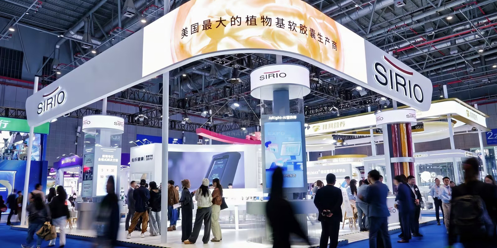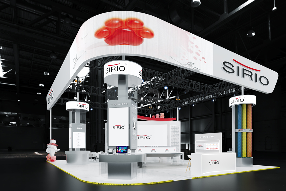 仙樂健康(SIRIO)的展臺設計,是“精準營養(yǎng)”與“人文溫度”的共生載體。純白主調(diào)的極簡空間,如實驗室般嚴謹有序,卻因弧形結構與暖光科技的交融,透出生動的人文關懷,這是仙樂“以科學精度守護生命溫度”的品牌內(nèi)核。